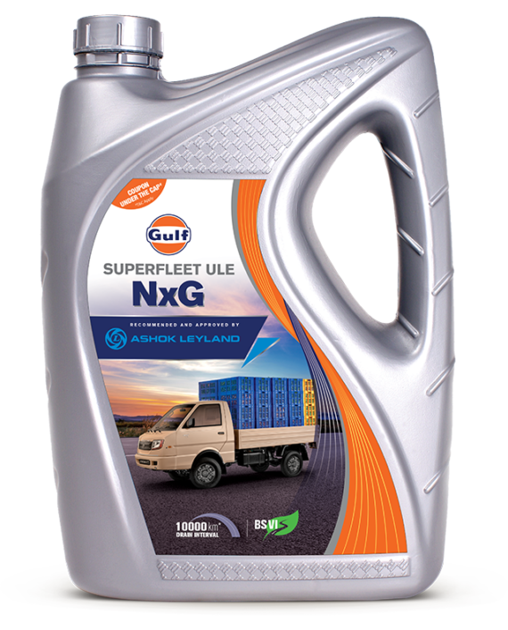 Gulf Superfleet ULE NxG is premium performance diesel engine oil specially developed for Ashok Leyland light duty vehicles meeting BS VI emission norms.